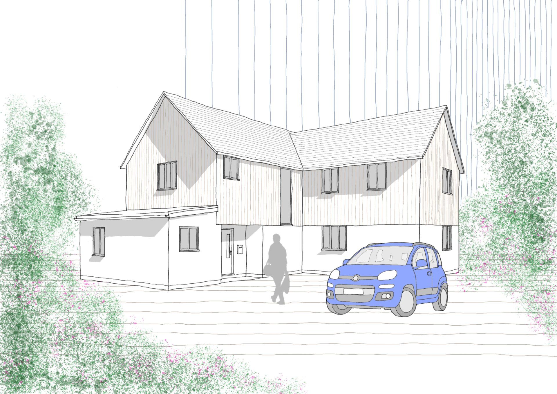 Trying out new iPad sketching techniques for a new rural house. I’m particularly proud of the Land Rover! #sketching #housesButton